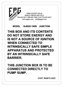 EPG Breakout Box, NEMA 4X non-metallic enclosure, junction box for 1 ea. level sensor. Includes desiccant dryer, bellows, and SureSeal connectors.