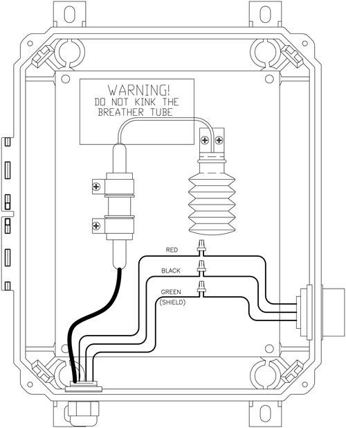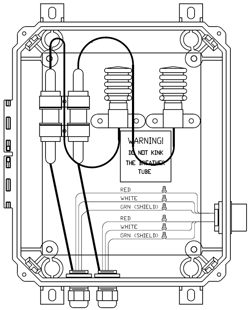 Gas Effect Breakout Junction Box, rated leak tight at 100" of water column (positive or negative). Includes SureSeal connectors, 3/4" & 1" Myers hub, transducer cable clamp, desiccant dryer, bellows, enclosure is powder coated steel.