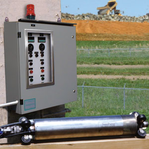 The L900LO PumpMaster™ is designed for use at leachate transport truck loading facilities. It combines a storage tank level sensor, volume batch controller, flow sensor input, remote start/stop pendant, and transport truck overfill protection to provide easy, worry-free loading of leachate transport trucks. The operator enters the number of gallons to be pumped using the flow meter keypad and presses the run (start) button. The meter has a backlit LCD display of values. When the desired number of gallons have been pumped, the pump stops. The controller is reset and ready for the next loading operation. A stainless steel truck tank high level sensor with bracket easily attaches to the top of the transport truck to prevent overfilling. For further information, see Bulletin 1020c for single phase and Bulletin 1025a for three phase.