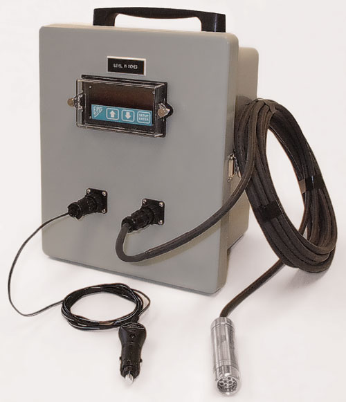 The portable LevelMaster™ Stand Alone (LMSA) 500 Liquid Level Monitoring System is designed for sites that require only occasional monitoring and displaying of liquid levels in sideslope risers, wells, tanks, sumps, reservoirs, and settling ponds. It can be conveniently carried in the cab of a vehicle and operate from 12 volt DC power.